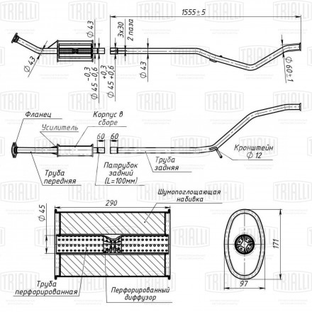 Глушитель для автомобилей Peugeot 307 (01-) дополнительный (резонатор) (алюминизированная сталь) изготовлены из ГОСТ листов оцинкованной стали 1-1,2 мм.