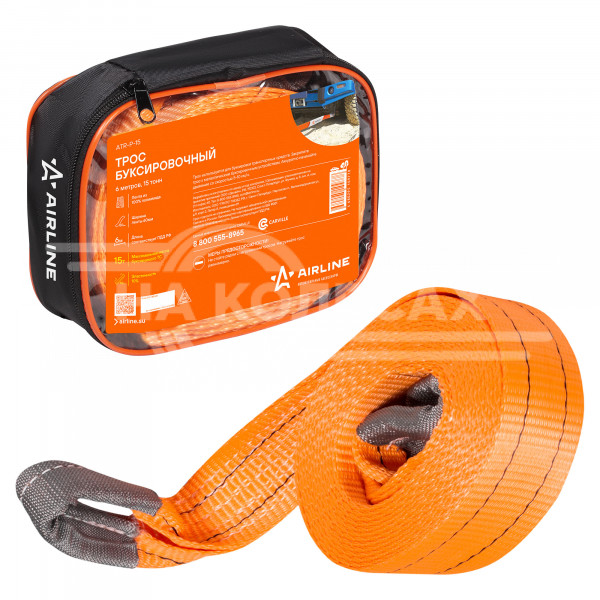 Трос VIP буксировочный лента 15 т, 6 м, без крюков, сумка