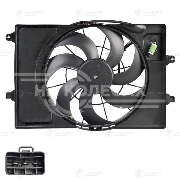Электровентилятор охлаждения для автомобилей Hyindai Solaris (10-)/KIA Rio (10-) (с кожухом и резистором) A/C+
