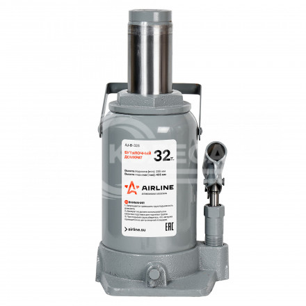 Домкрат бутылочный 32т (MIN - 255 мм, MAX - 405 мм) Описание: Бутылочные домкраты обладают самыми компактными размерами и простейшей схемой функционирования. Занимает мало места и не требует особых знаний в использовании. Единственное требование - хранение и транспортировка в вертикальном положении. Бутылочные домкраты имеют самый широкий модельный ряд (от 2 до 100т), что делает их незаменимыми при необходимости поднять грузовик или автобус. Характеристики: Артикул: AJ-B-32S Ход штока, мм: 150 Грузоподъемность, т: 32 Высота подхвата, мм: 255 Высота подъема, мм: 405 Ход удлинительного винта, мм: нет Комплектация: Домкрат - 1 шт. Рукоятка (2 части) - 1 шт. Ремкомплект - 1 шт. Гарантийный талон - 1 шт. Коробка - 1 шт. Гарантия: от 1 года...